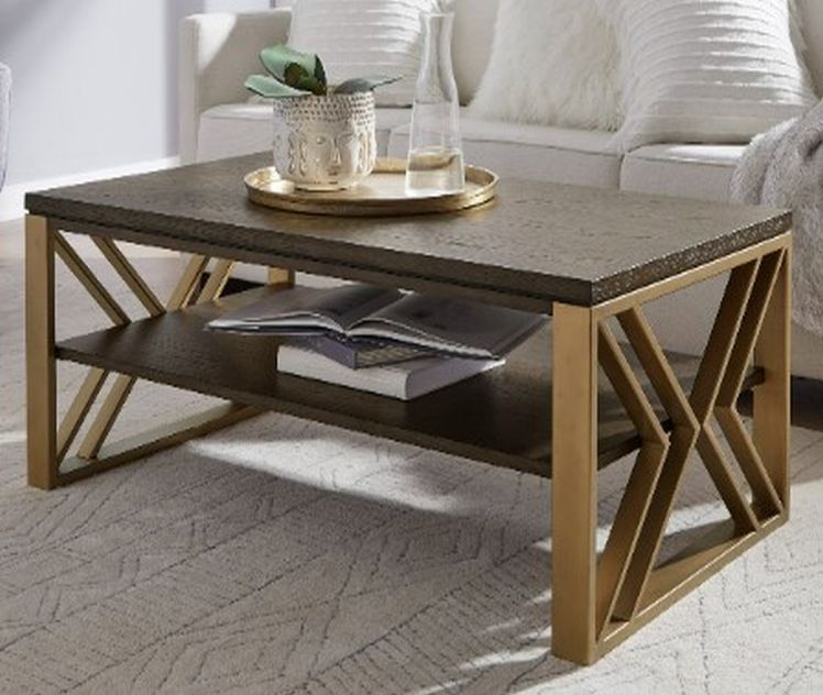 Add a modern touch to your living room with the 1321 Brass/Cocoa Large Rectangular Cocktail from Null Furniture. It is the perfect piece for your living room and will add a certain richness to your room’s aesthetic. This table will go nicely with your living room décor.Read More