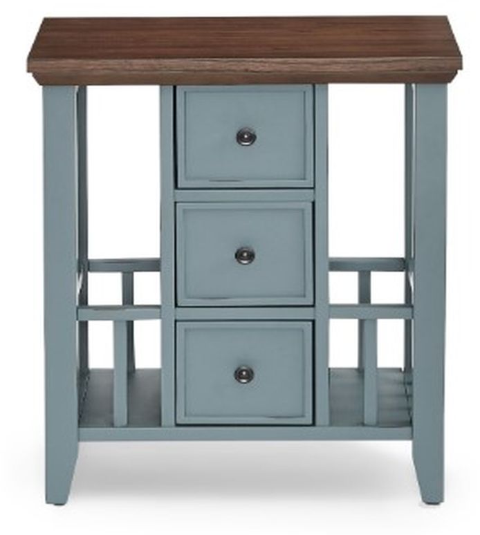 A collection of unique - standalone pieces, designed and scaled to accentuate and complement any room. This end table has an indigo base and a brown cherry top. Make a bold statement by incorporating this furniture into your home.Read More