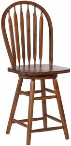 The 24" arrowback swivel barstool by Tennessee Enterprises offers a timeless arrow-back style combined with a full swivel seat, crafted in solid oak for durability and classic appeal. Perfect for kitchen islands or dining counters that require comfortable and accessible seating.Read More